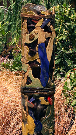 There is no mistaking that this is an artist's garden. Every corner is filled with art, creative water features and furnishings. Jack Hays created the paintings and ceramic water features you find throughout the garden. It is a reminder that a Northwest garden is a canvas just waiting for us to fill with colorful art and plantings. This came close to being my favorite with the playful totem pole-like water feature. Hays certainly turned this display into a vivid cue that we can fill our gray northwest days with splashes of color.