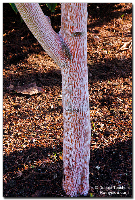 Take the time to take a close look at the trunks of trees. Not the young trees in your new landscape — most haven’t had time to develop an attractive, craggy layer of skin. Trees that reveal a textural beauty in their bark, are usually the mature ones. The outer layers (rhytiderm) protect the inner, living layers of the trunk, which is called the cambium. Without bark, insects, fungi, and other creatures would be feasting on the sugar-rich inner bark.